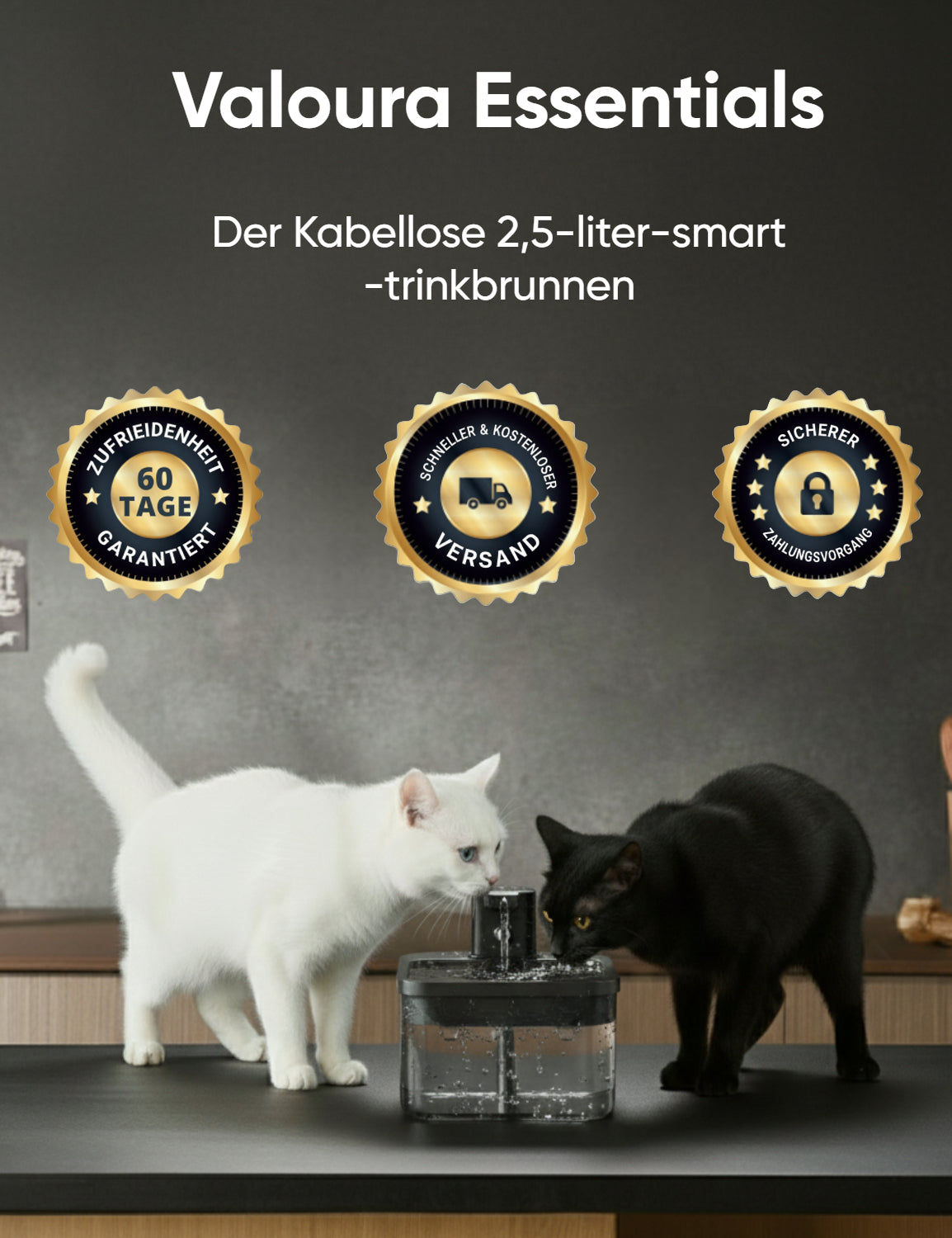 Test ValouraEssentials for 60 days. If your cat hasn't increased water intake or you're unsatisfied for any reason, return it for a full refund - no questions asked.